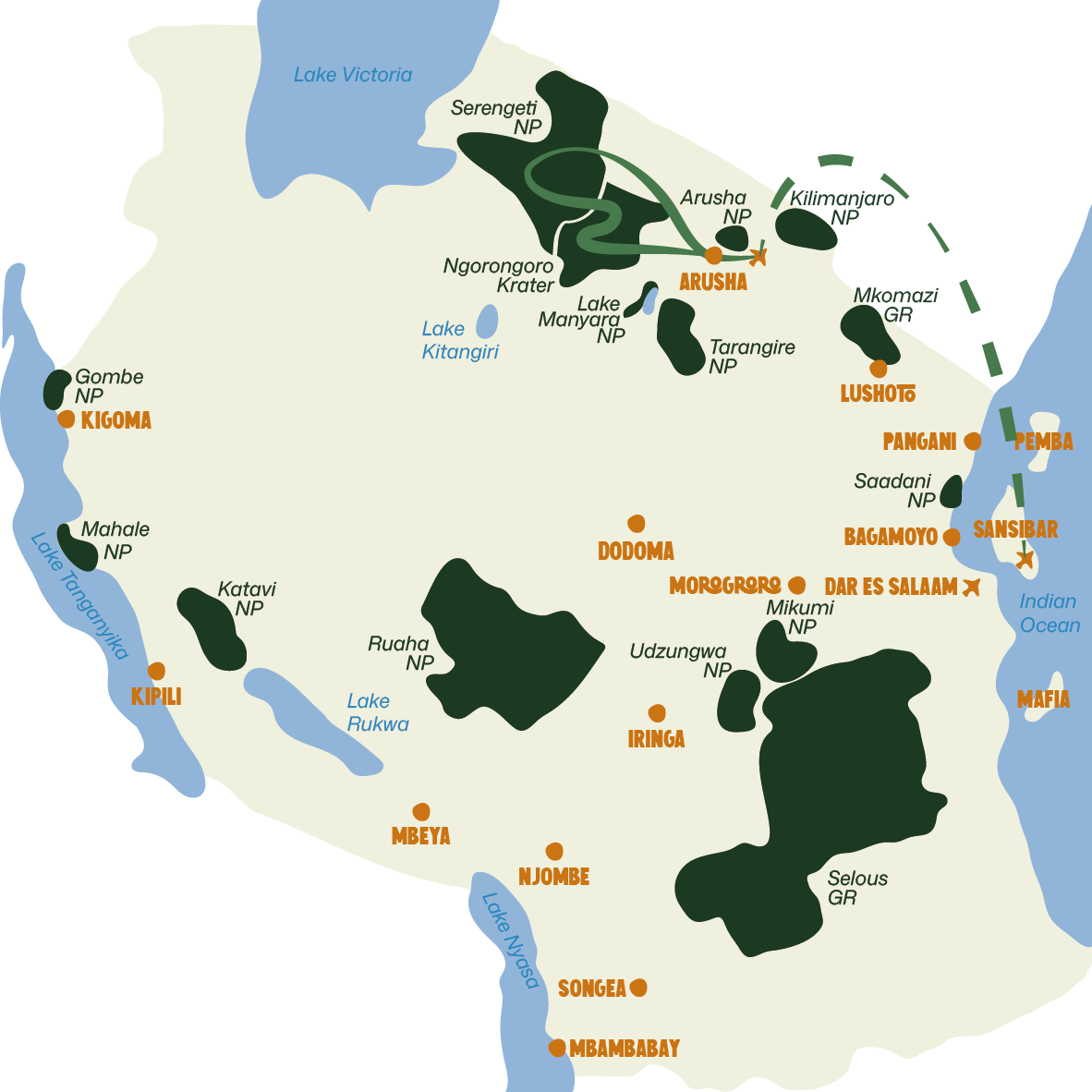 Lake Manyara, Ngorongoro, Serengeti, Tarangire